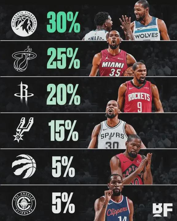 圣安东尼奥马刺队获得:凯文杜兰特,2025年第4顺位
